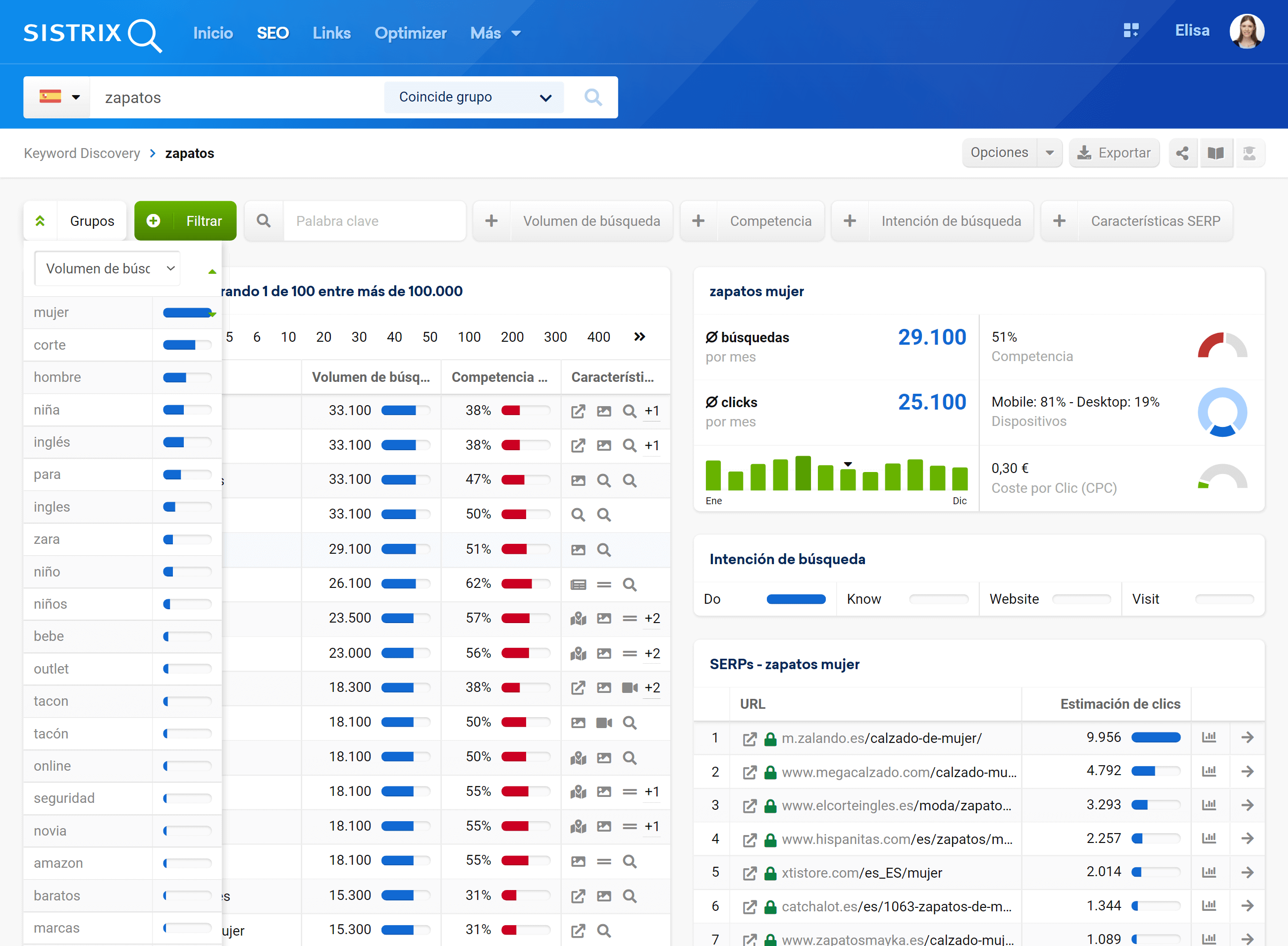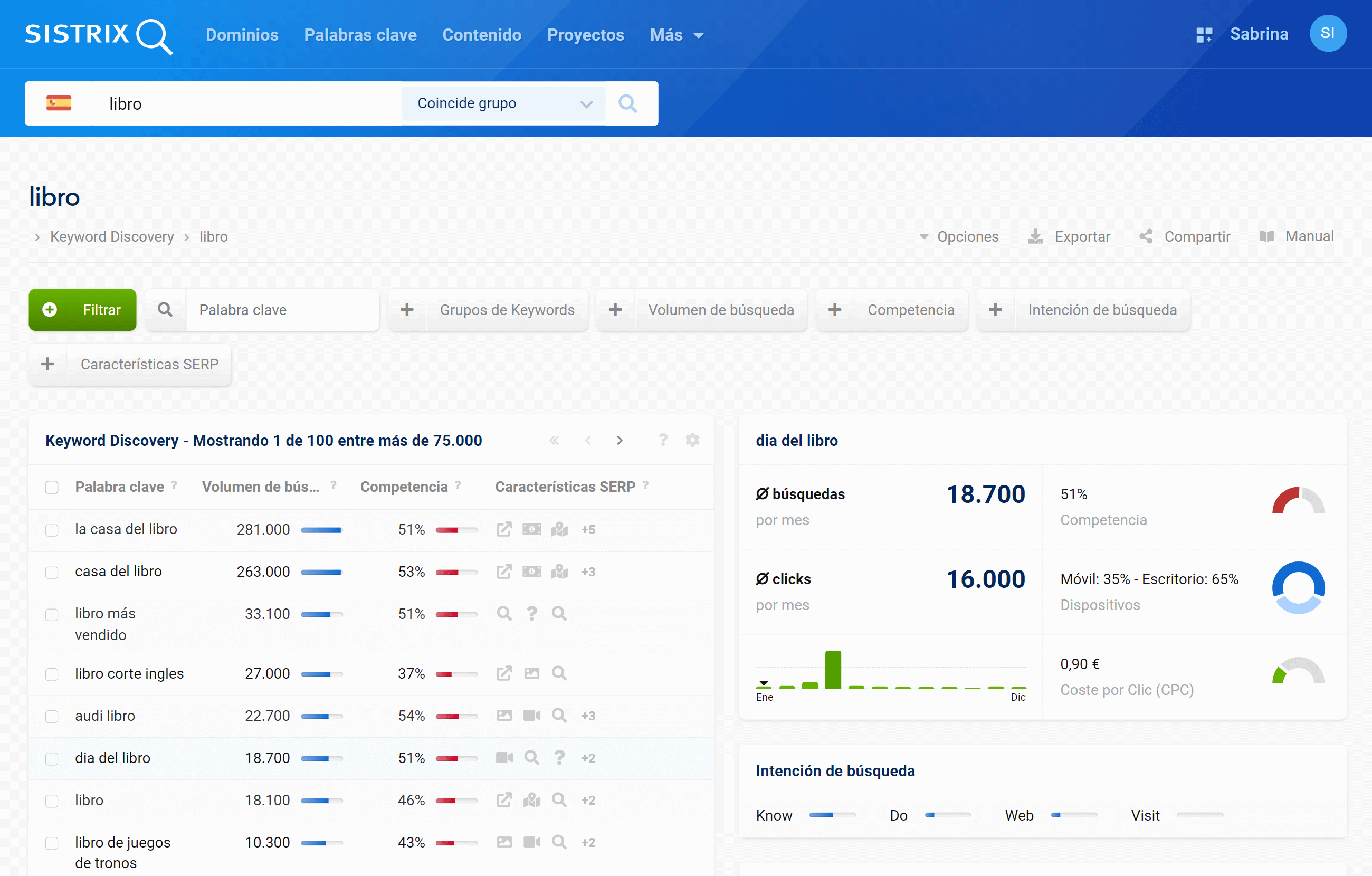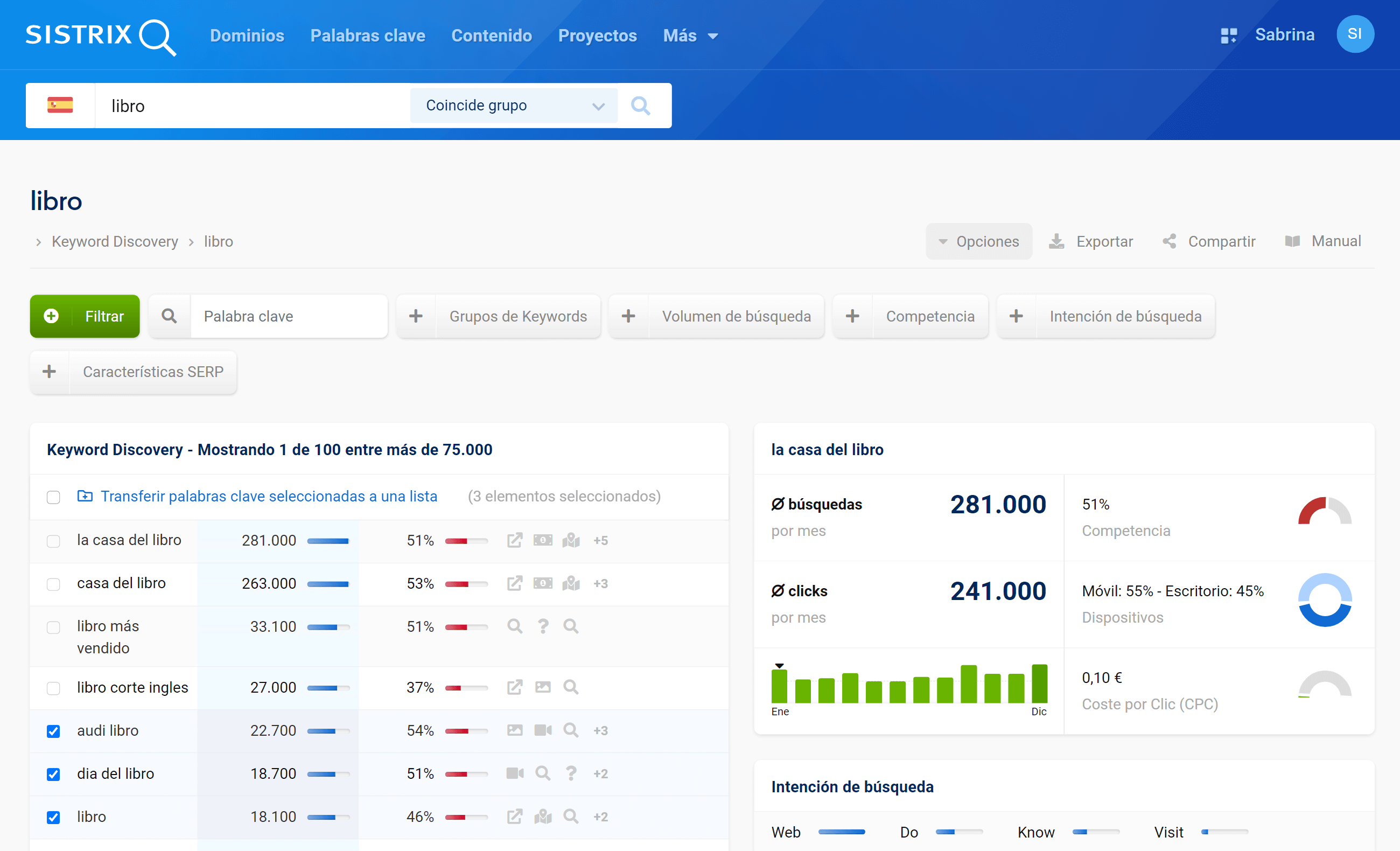La investigación de palabras clave sienta las bases para una estrategia de SEO exitosa. Se utiliza para definir las palabras clave y los temas en los que el contenido de un sitio web debe ser optimizado. El objetivo es llegar a los usuarios adecuados con el contenido adecuado en el momento adecuado. En este tutorial te mostraremos cómo realizar una búsqueda de palabras clave con la herramienta SISTRIX.