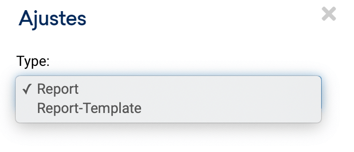 En la sección ajustes, elige «Tipo> Plantilla de informes» (A) y de este modo se guardará como una plantilla de informe que podrás utilizar de base para crear informes nuevos.