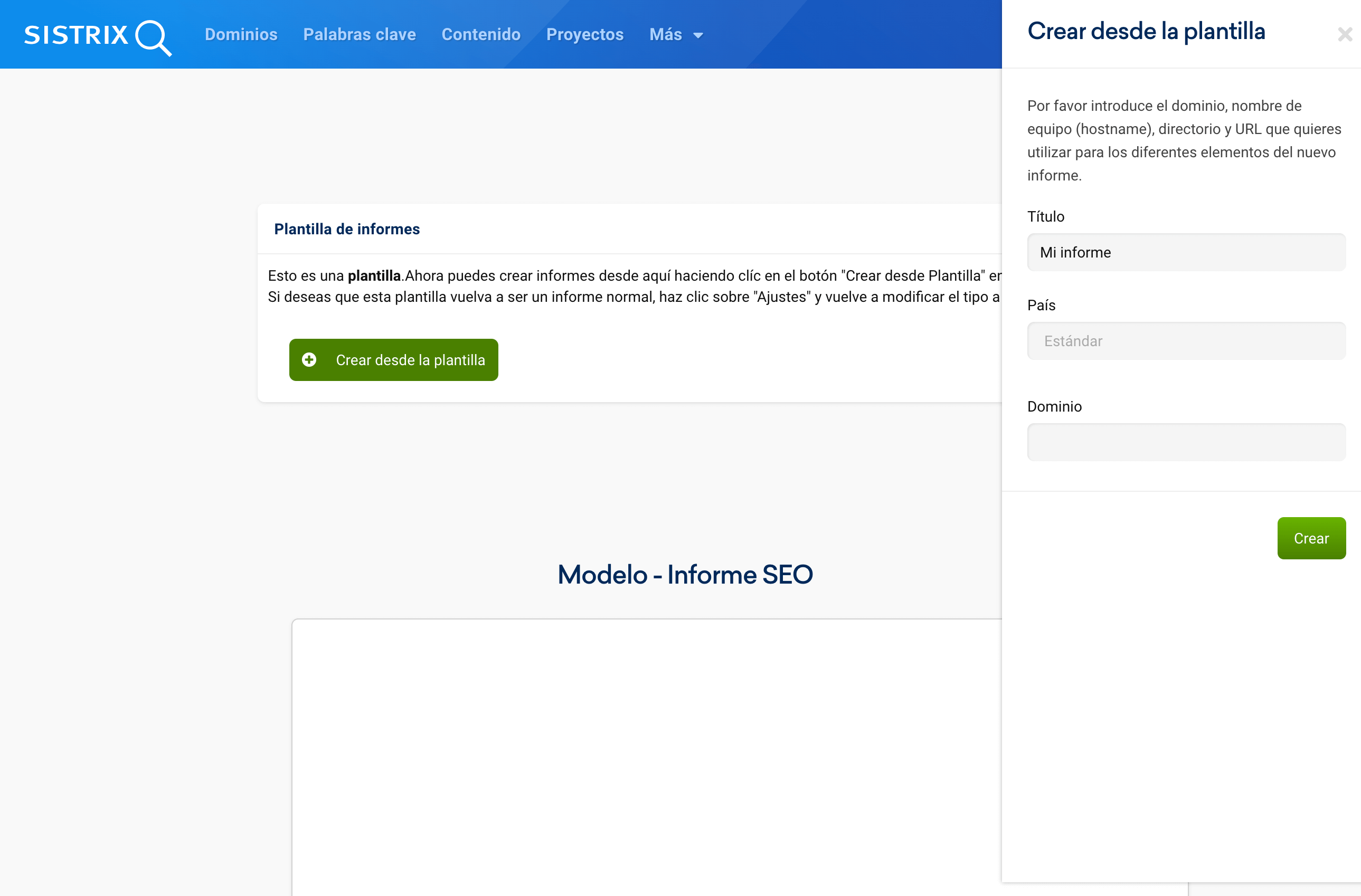 El número máximo de informes que puedes crear depende del paquete de SISTRIX que hayas contratado.