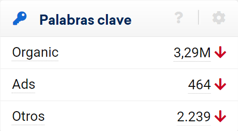 - Palabras clave (España): número de palabras clave para las que se posiciona el dominio en el país seleccionado. En nuestro caso, se trata de España.