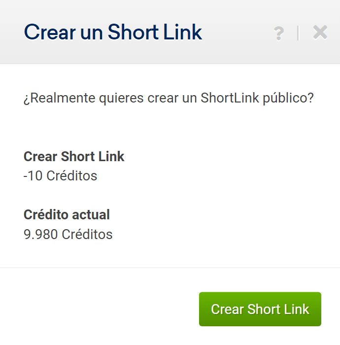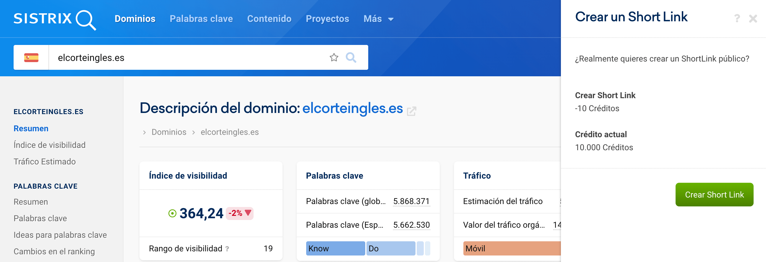 Cada shortlink te costará 10 créditos y se mantendrá activo durante 7 días. Para averiguar más sobre el sistema de créditos de SISTRIX puedes leer el artículo «Exportación y créditos» en la herramienta SISTRIX.