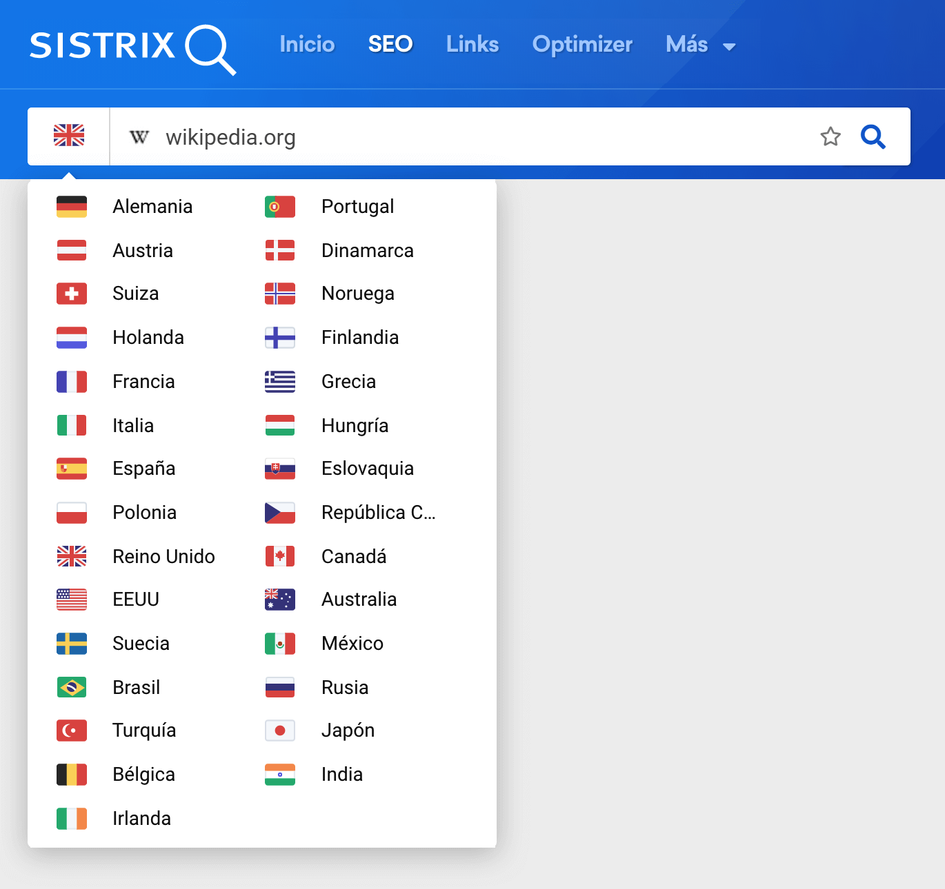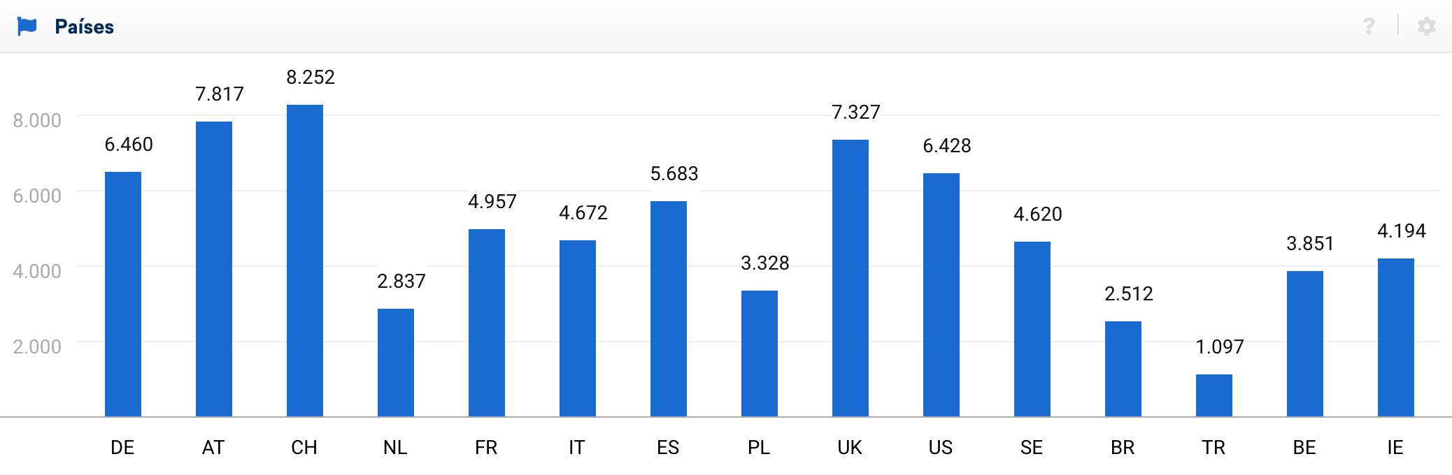 Haz clic en «Top Países» para acceder a datos ampliados, que engloban todos los países disponibles en Sistrix.